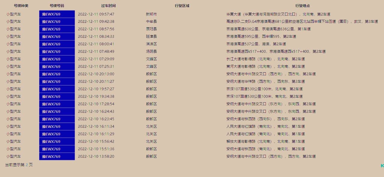 车辆行驶轨迹查询